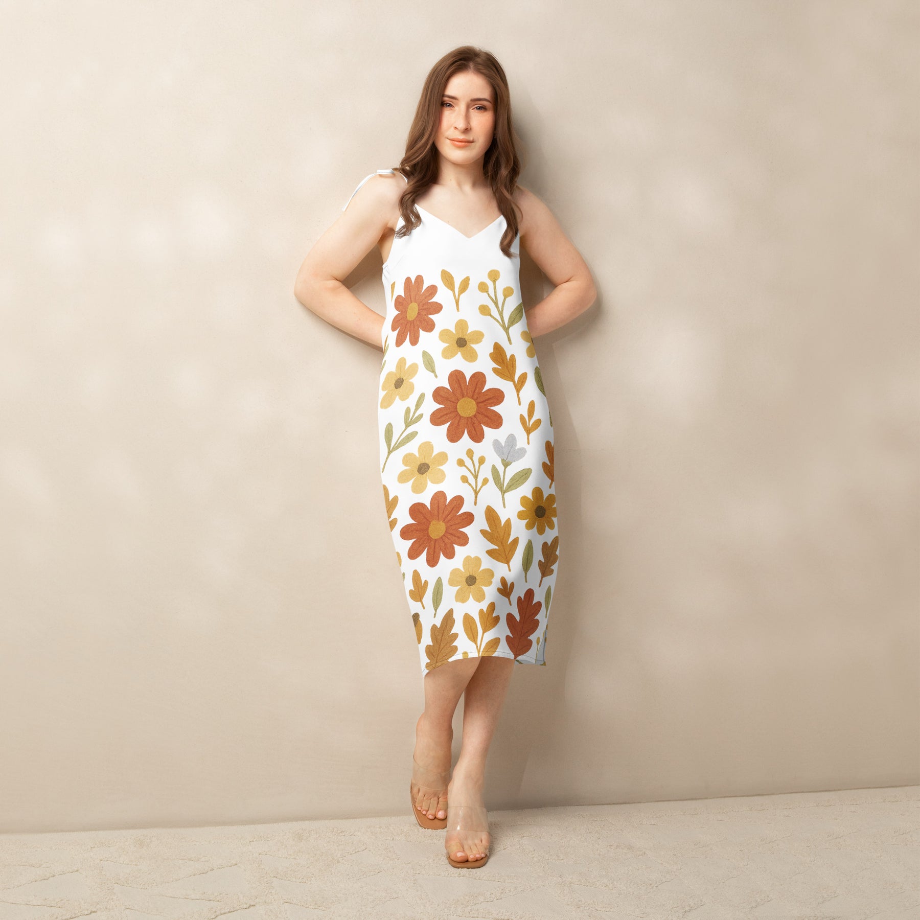 Floaty, flirty, and totally flattering—from daytime garden parties to dinner dates. This midi dress features a breezy side slit, adjustable tie straps, and a built-in bra for no-fuss style.