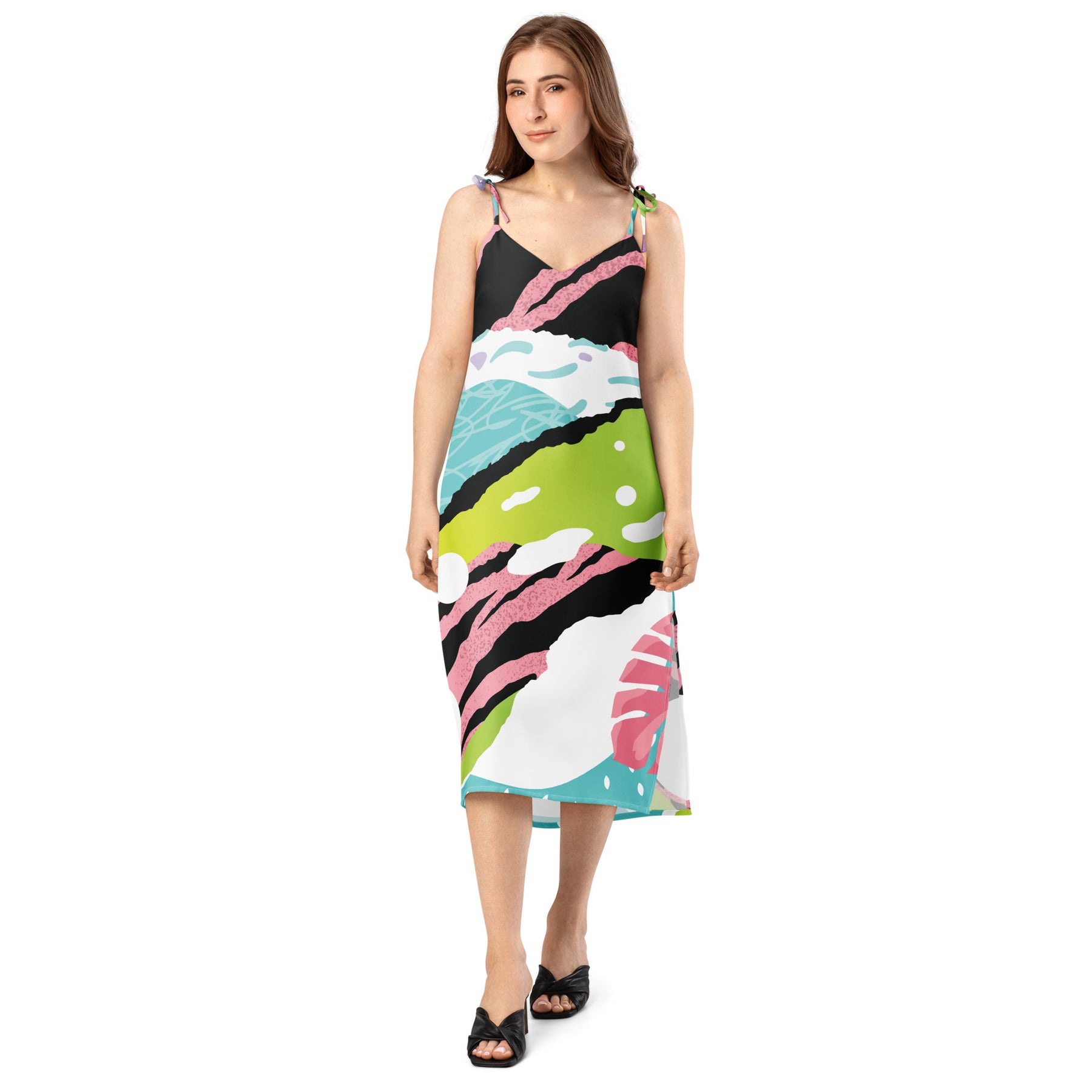 Floaty, flirty, and totally flattering—from daytime garden parties to dinner dates. This midi dress features a breezy side slit, adjustable tie straps, and a built-in bra for no-fuss style.