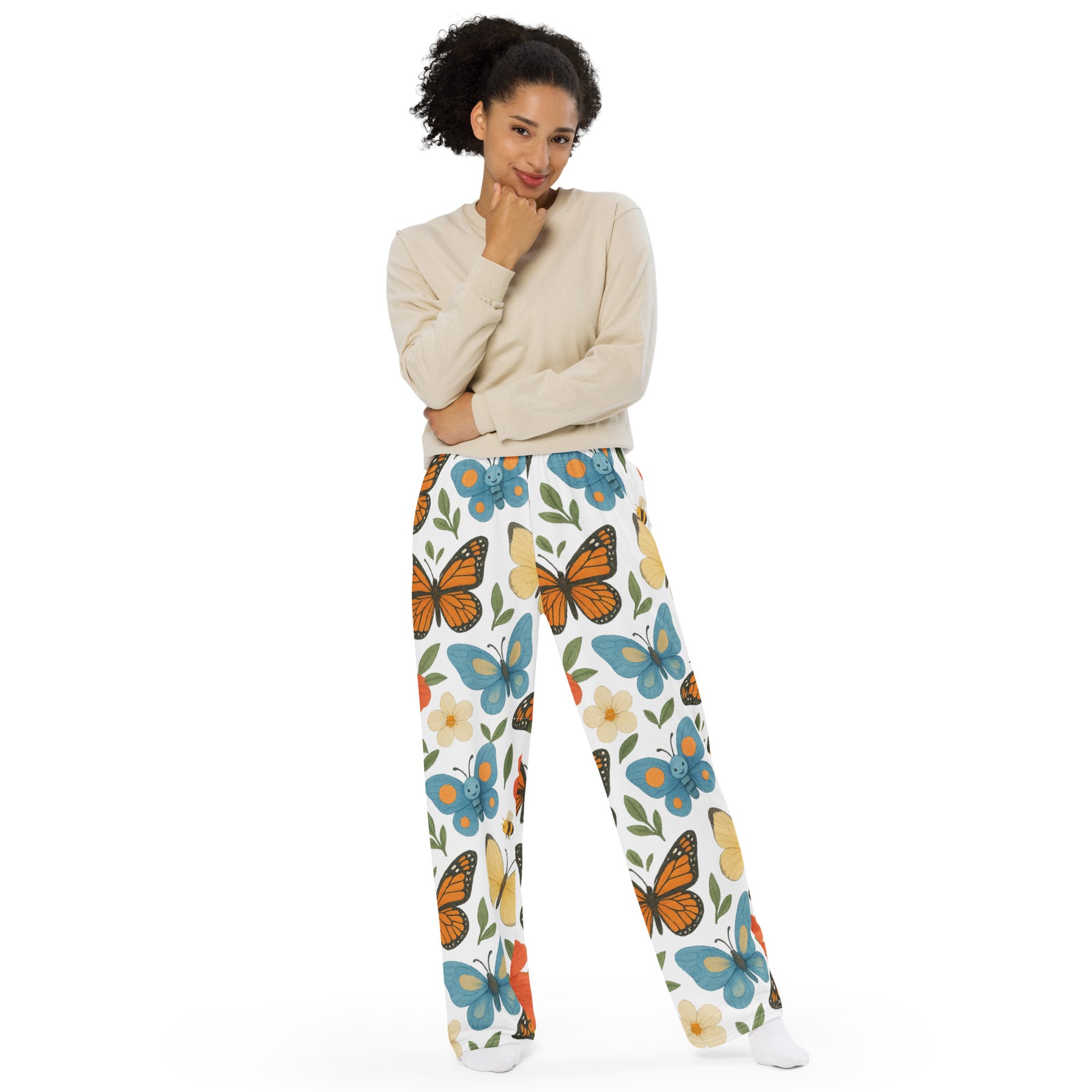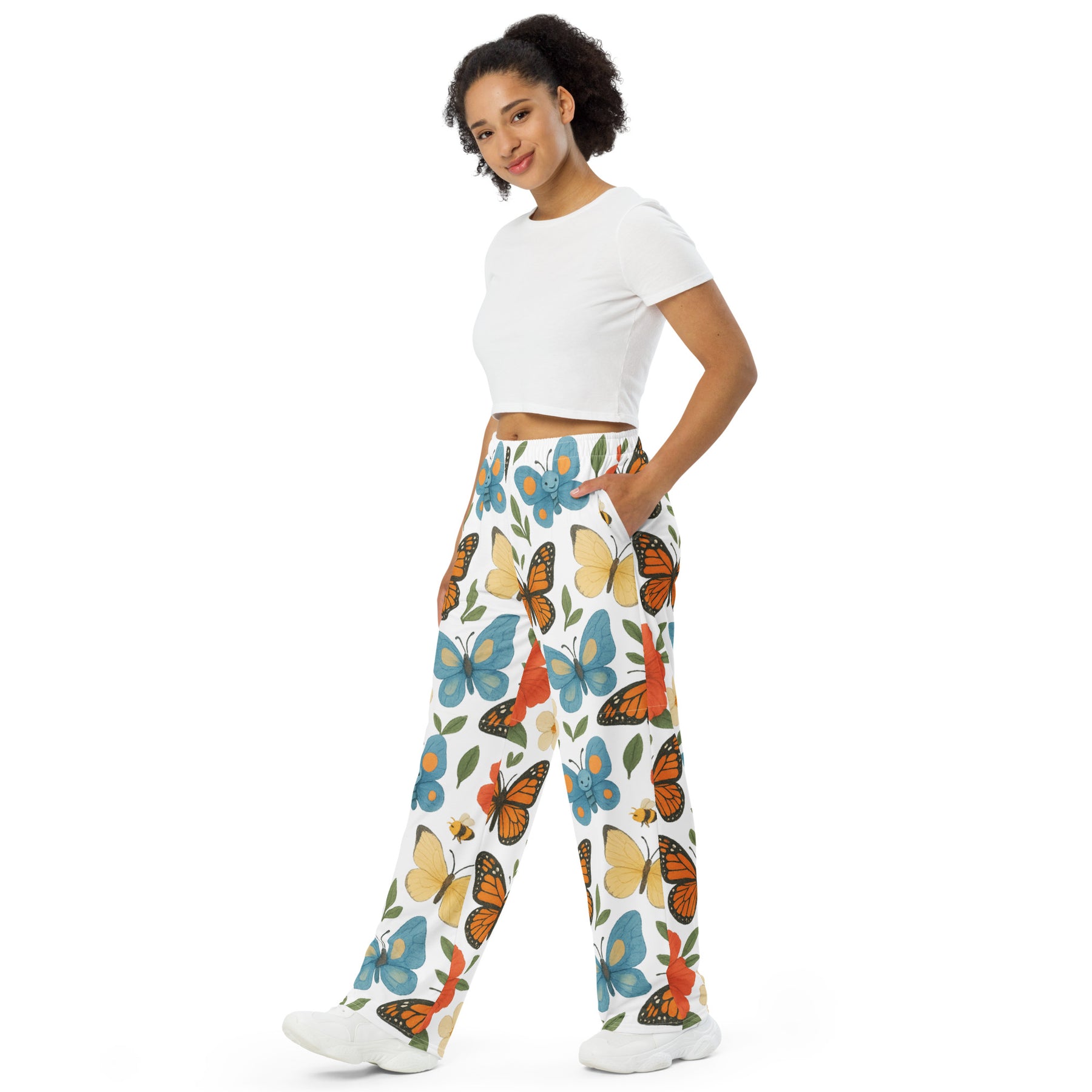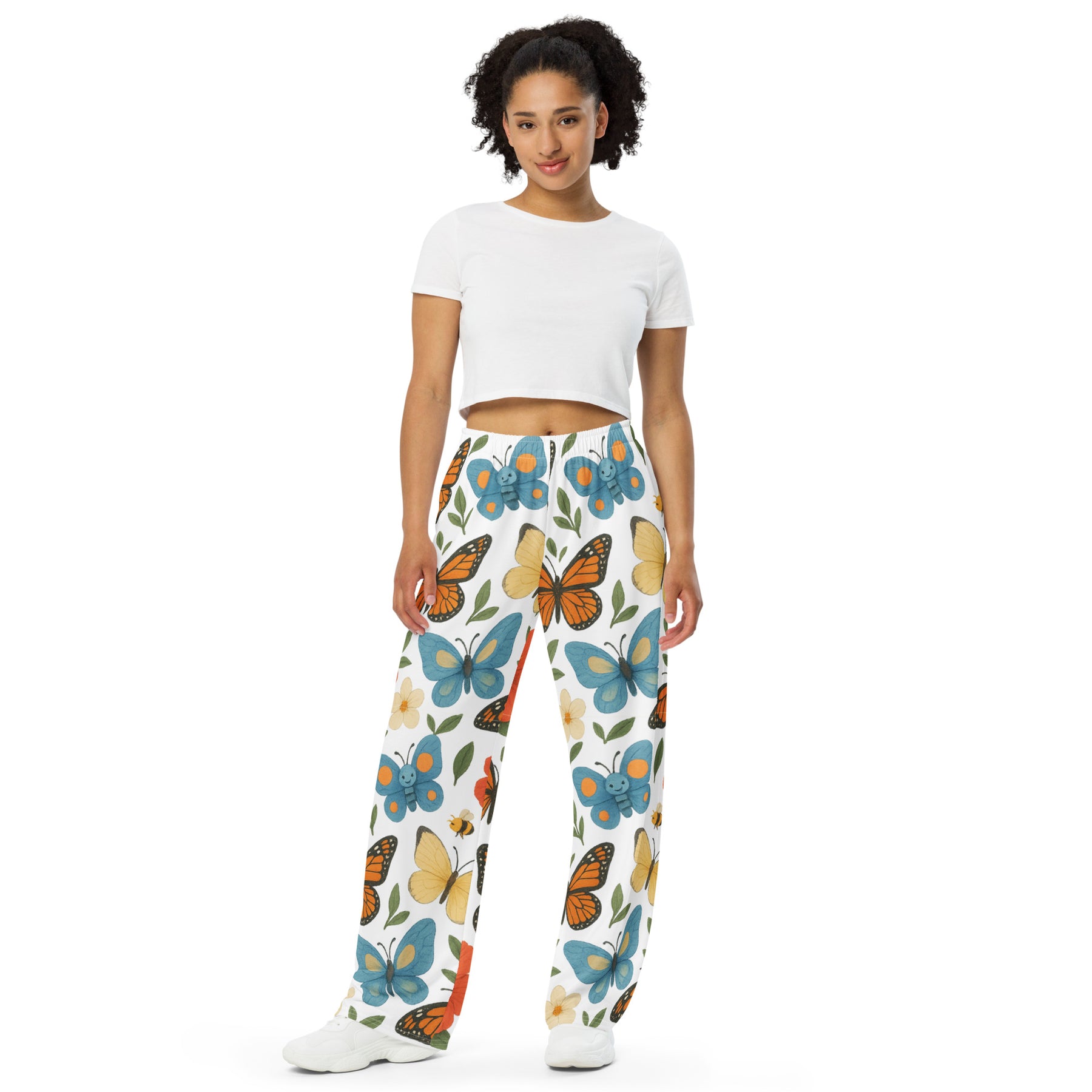 All-over print unisex wide-leg pants - Monarch butterfly