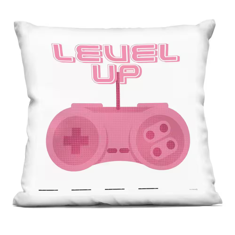 Girl Gamer Pink Level up Pink Abstract Polyester 18 In. X 18 In. Throw Pillow
